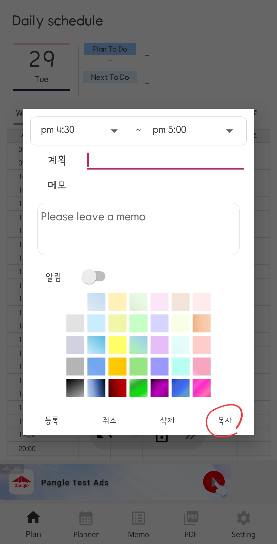 1. 개별 계획을 여러 날짜로 복사하시거나